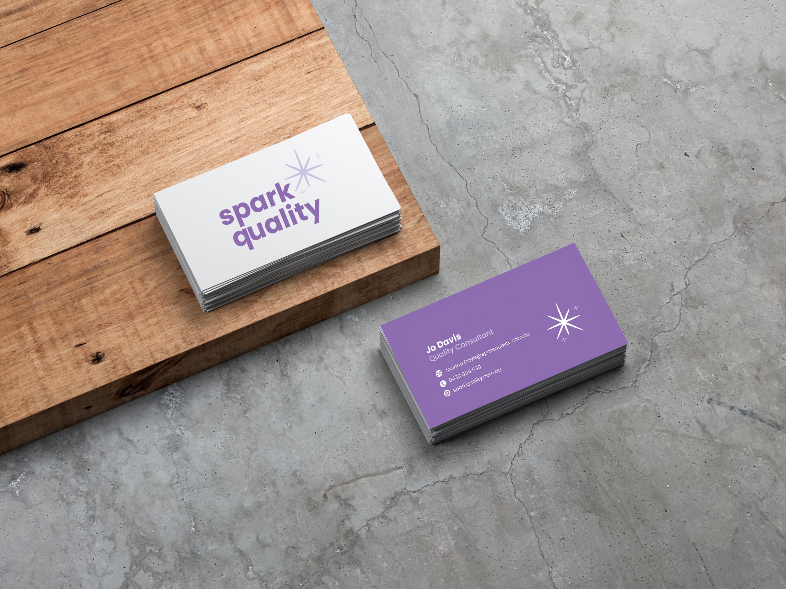 For Spark Quality, I created a modern brand identity from the ground up—including logo design, a clear style guide, and business card designs. With very little to go on beyond the business name and a request to use pastel purple, I developed a look that feels fun, fresh and contemporary, while still communicating trust and professionalism. The result is a brand that suits a quality consultant working closely in the disability sector—polished, approachable, and full of personality.